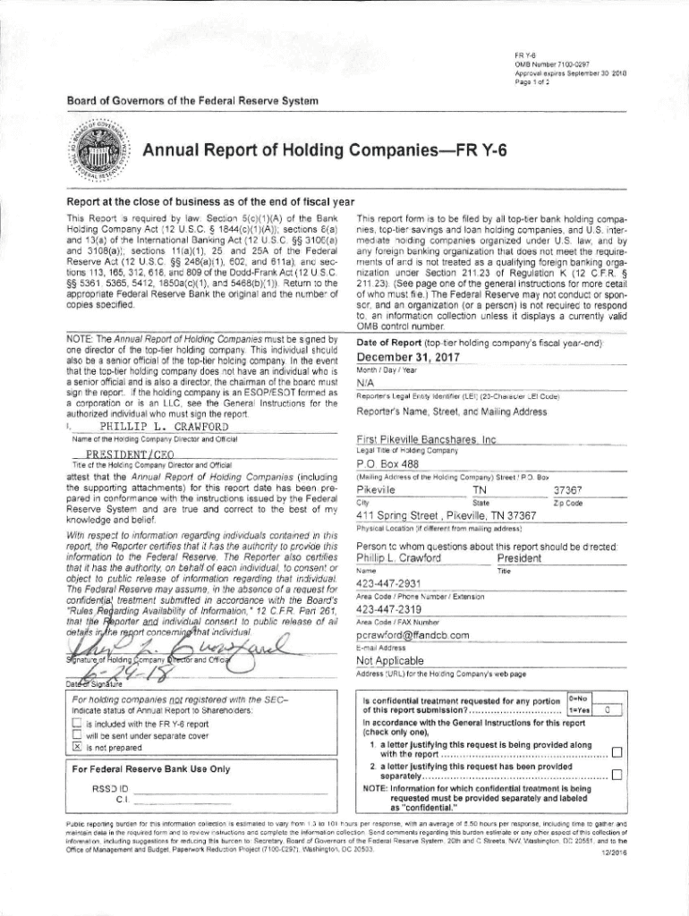 FR Y6 0 MB Number 71000297 Approval expires September 30, 2018-Page 1 or 2Board of Governors of the Federal Reserve Systematical Report of Holding Companies FR Y6 Report at the close of business