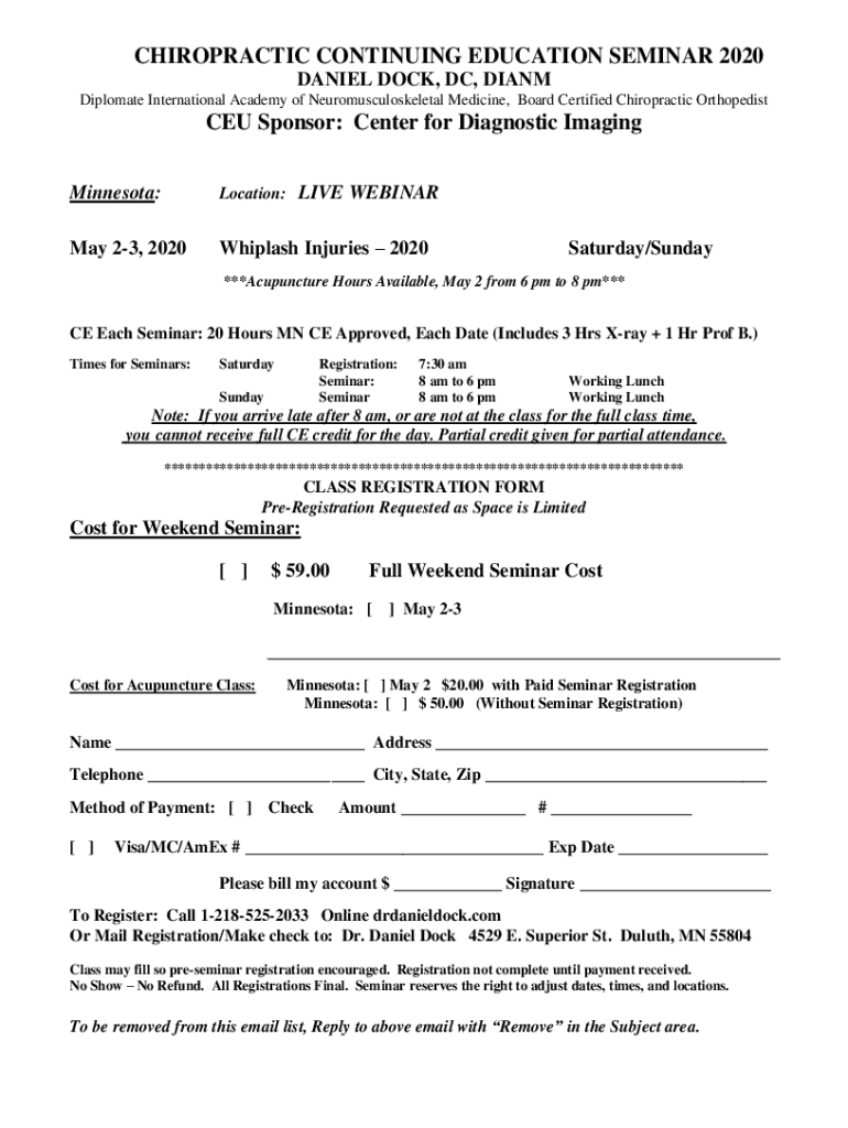 Get the free CHIROPRACTIC CONTINUING EDUCATION ... - Dr. Dan Dock