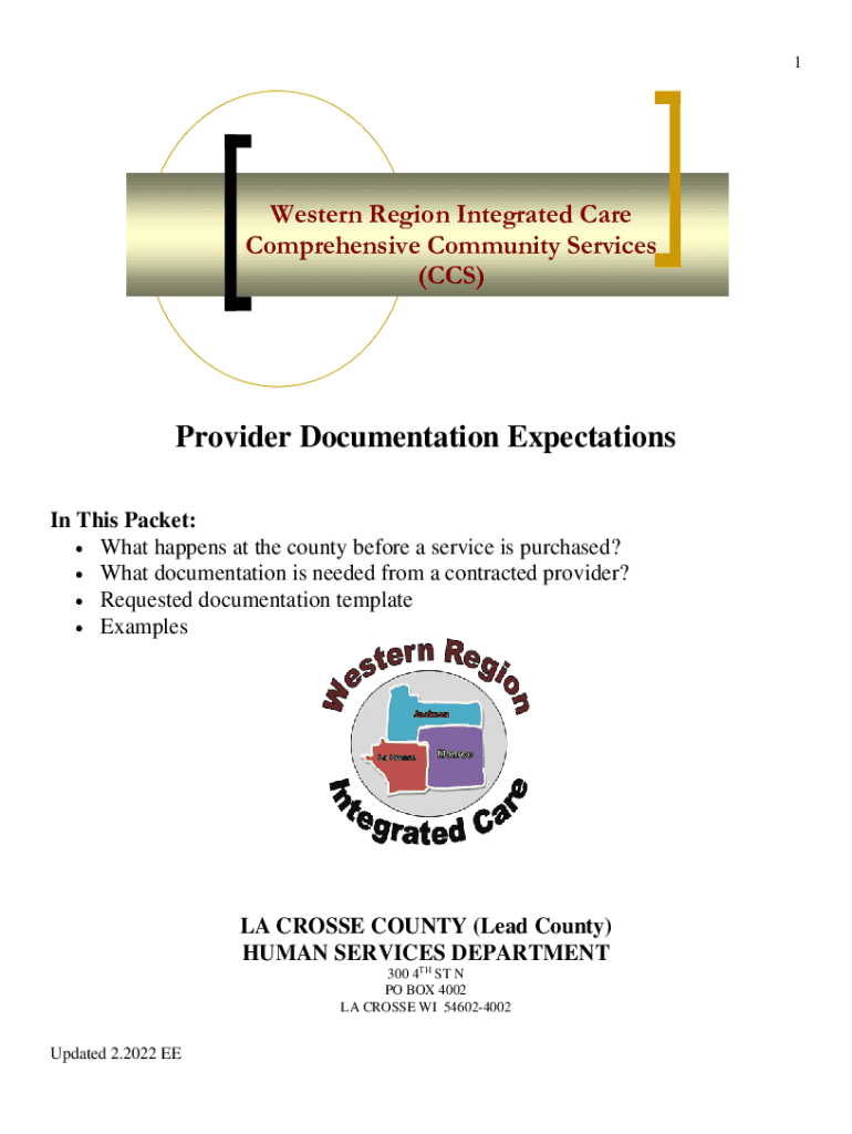 1Western Region Integrated Care Comprehensive Community Services (CCS)Provider Documentation Expectations In This Packet: What happens at the county before a service is purchased? What documentation