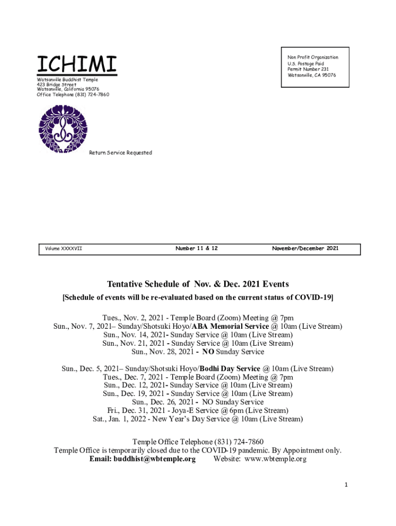 Chiming Profit Organization U.S. Postage Paid Permit Number 231 Watsonville, CA 95076Watsonville Buddhist Temple 423 Bridge Street Watsonville, California 95076 Office Telephone (831) 7247860Return