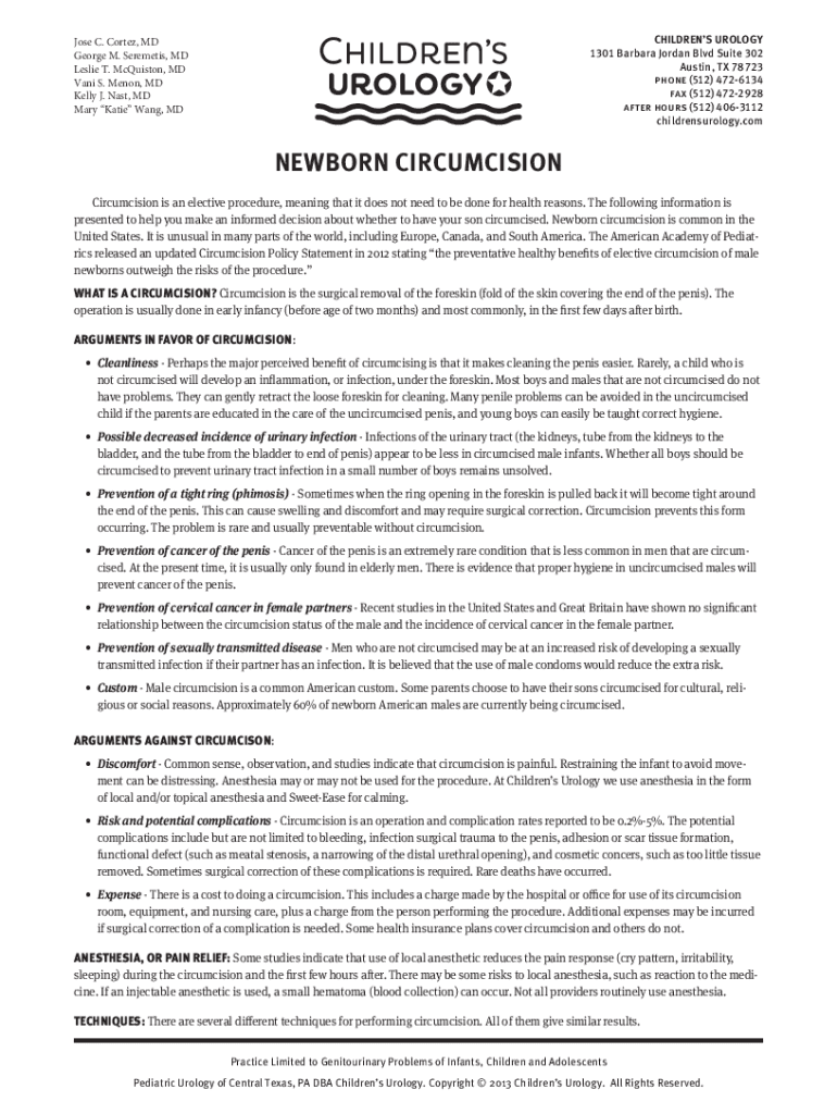 Get the free NEWBORN CIRCUMCISION