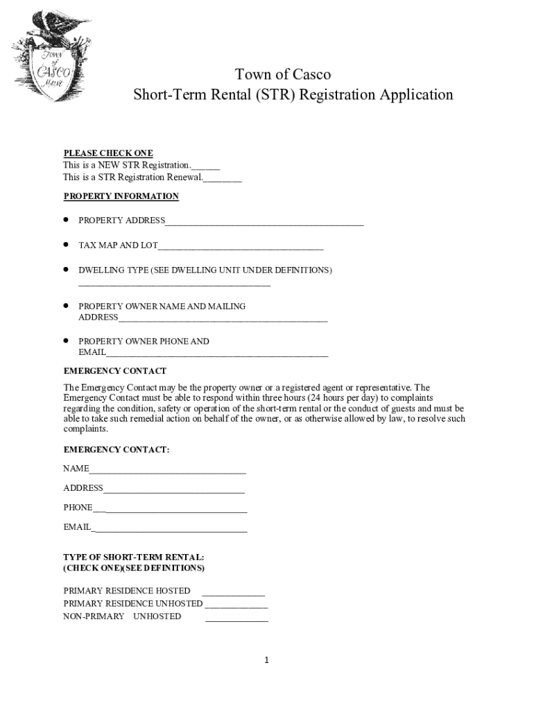 Get the free Casco Short Term Rental Registration Ordinance Approved at Town ...