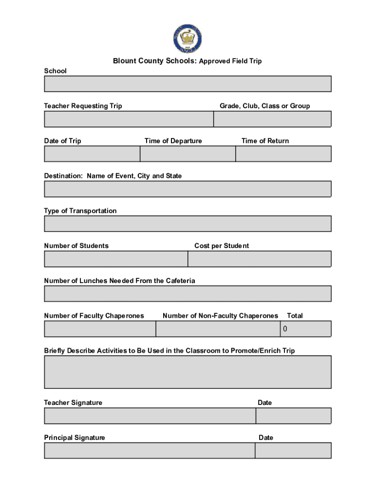 Get the free Field Trip Forms - Blount County Schools