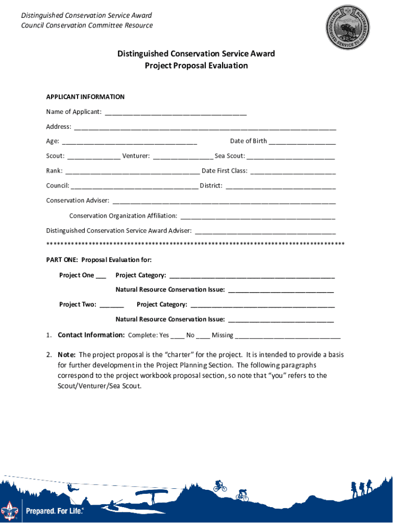 Get the free Distinguished Conservation Service Award Project Proposal ...