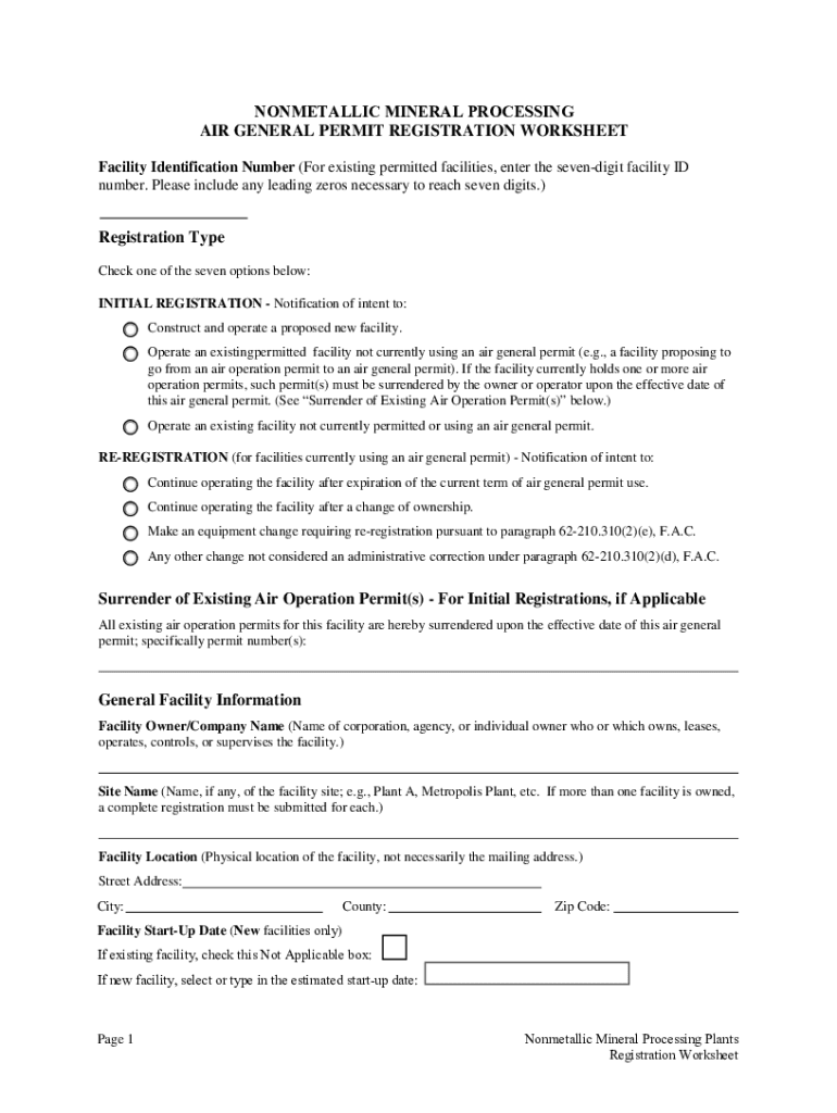 Nonmetallic mineral processing plants can be filled out online or through paper forms provided by regulatory agencies.