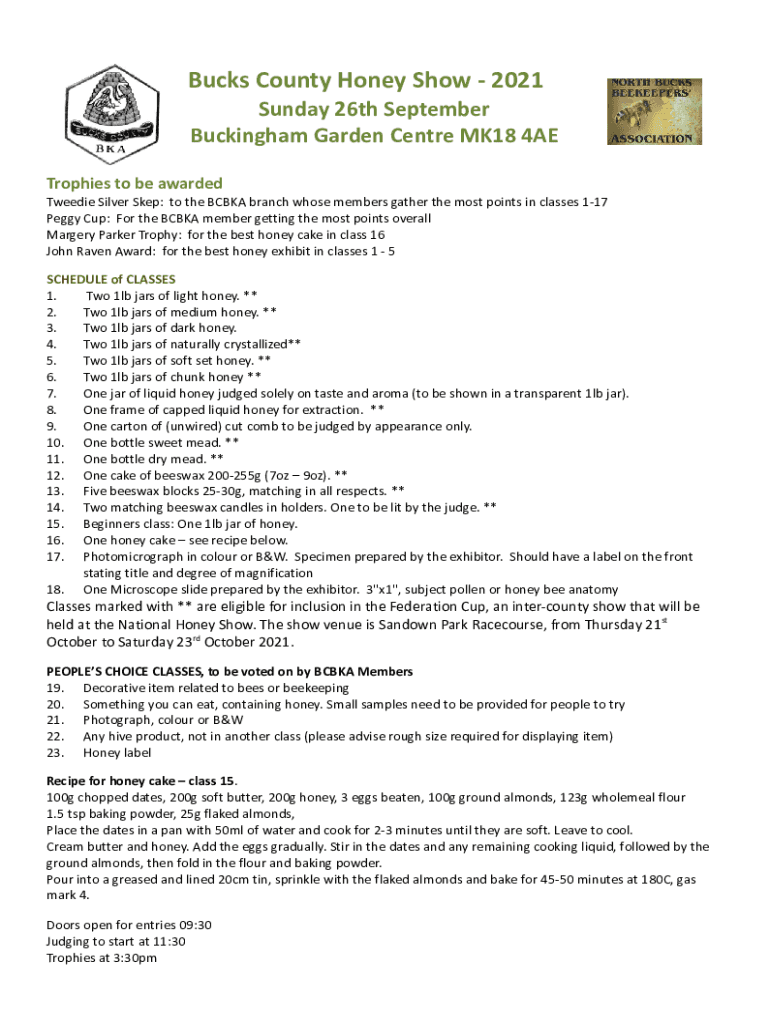 Get the free Bucks Honey Showentry form2021.docx