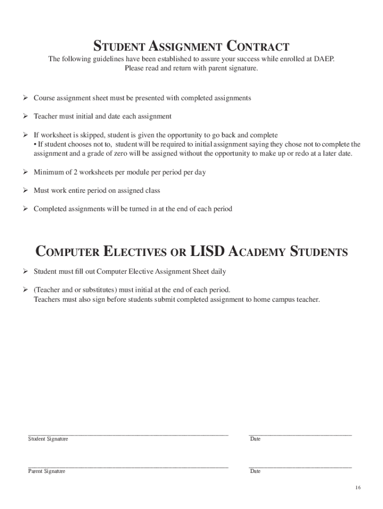 Get the free student assignment contract