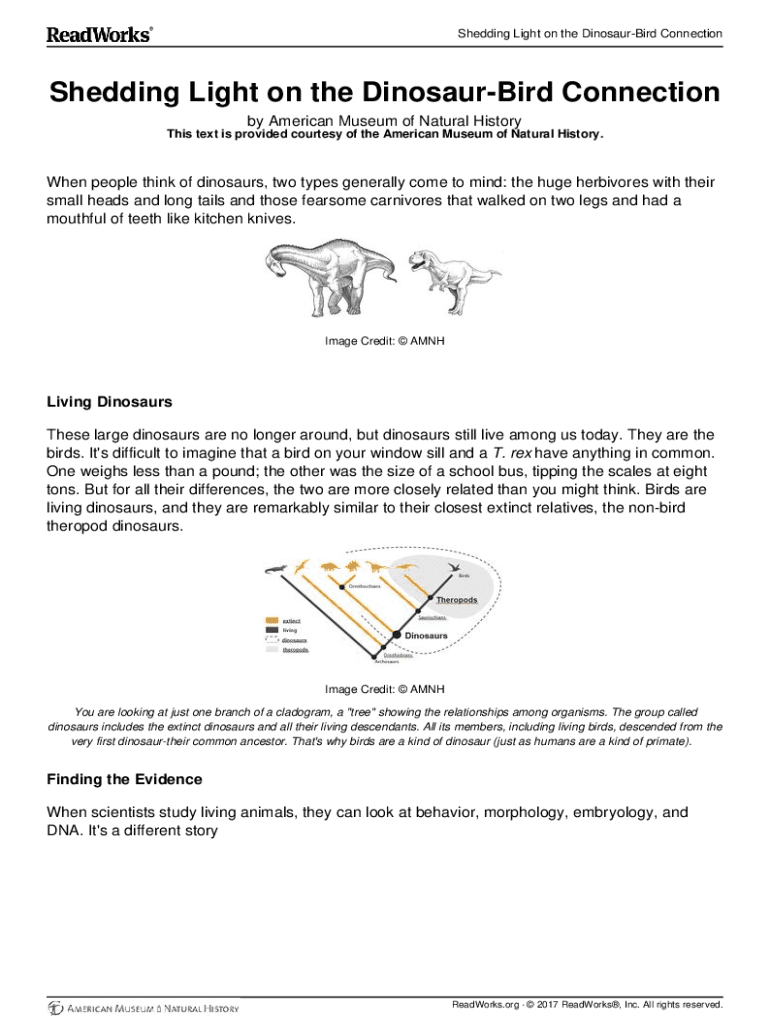 Get the free shedding light on the dinosaur bird connection answer key