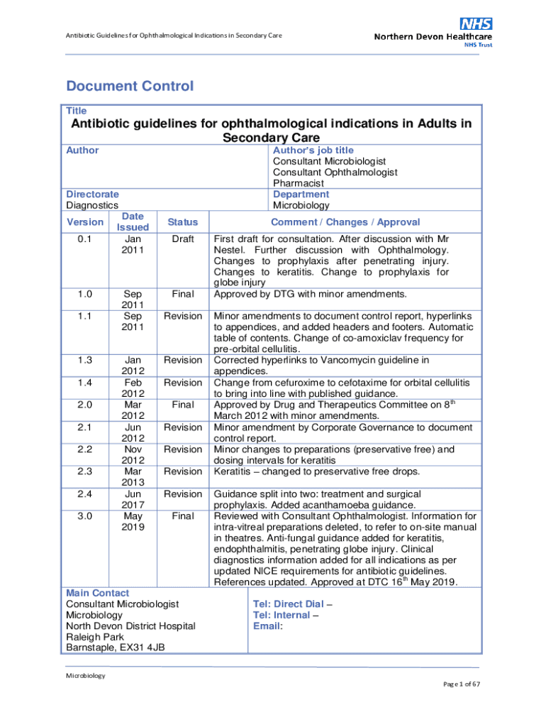 Antibiotic Guidelines for Ophthalmological Indications in Secondary CareDocument Control