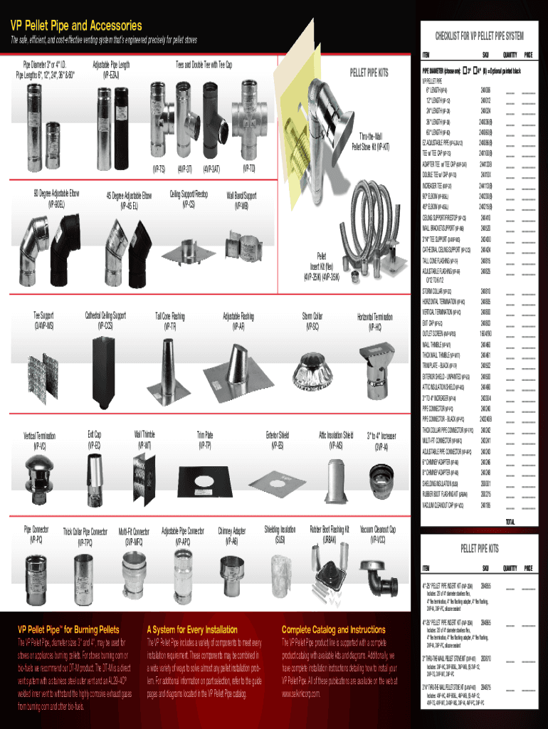 VP Pellet Pipe and AccessoriesCHECKLIST FOR VP PELLET PIPE Systemize safe, efficient, and cost-effective venting system that's engineered precisely for pellet stoves