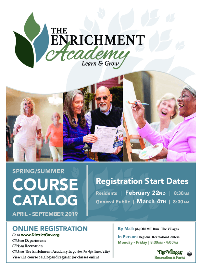 SPRING/SUMMERHOUSE CATALOGRegistration Start Dates February 22nd | 8:30am Public | March 4th | 8:30 am Residents |APRIL SEPTEMBER 2019ONLINE Registration to www.DistrictGov.org Click on Departments