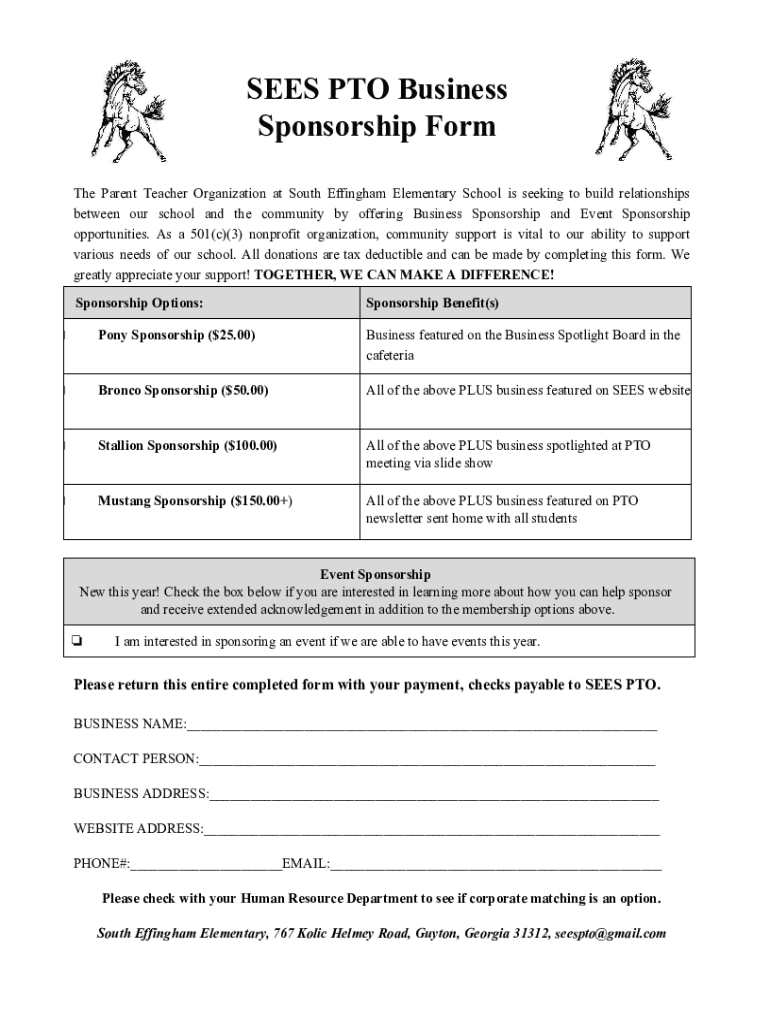 To fill out sees PTO business sponsorship, businesses can contact the PTO committee or visit the school's website for the sponsorship form.
