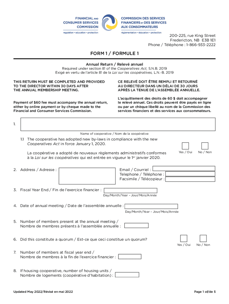 200225, rue King Street Fredericton, NB E3B 1E1 Phone / Tl phone : 18669332222FORM 1 / FORMULA 1 Annual Return / Elev annuelRequired under section 81 of the Cooperatives Act, S.N.B. 2019 Exit en vert