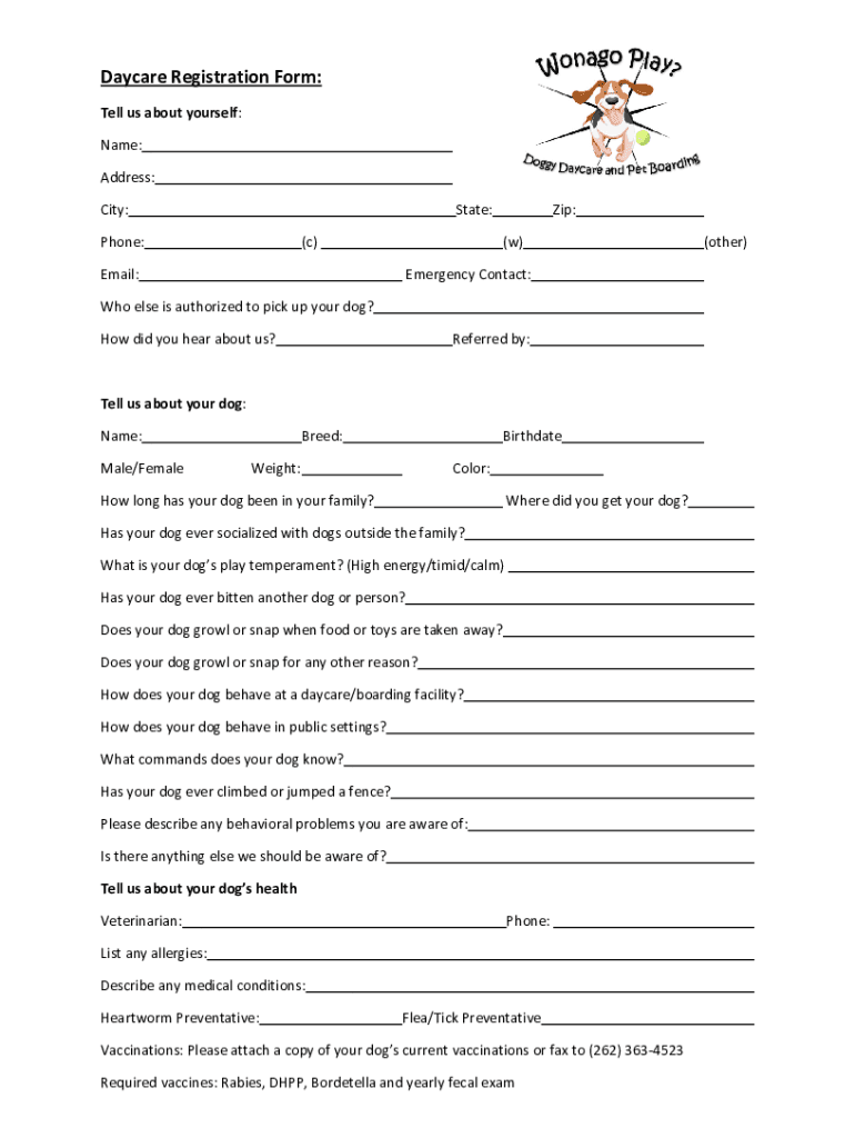 DaycareRegistrationForm: Tellusaboutyourself: Name: Address: City: