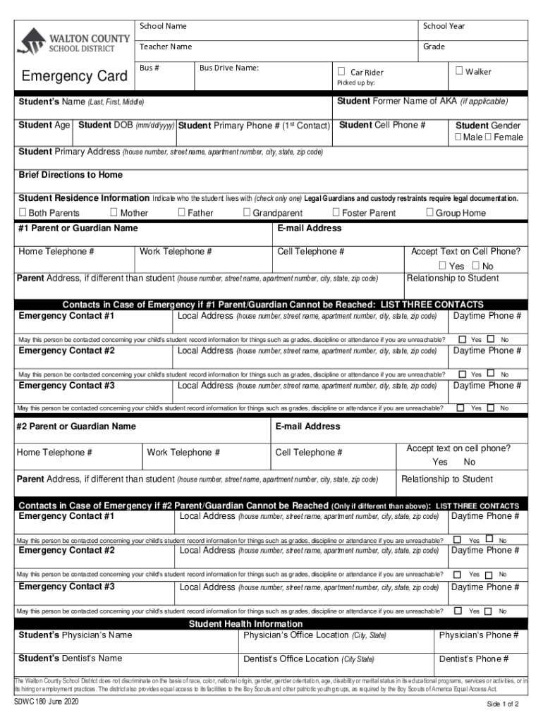 Get the free Emergency Card - Walton County School District