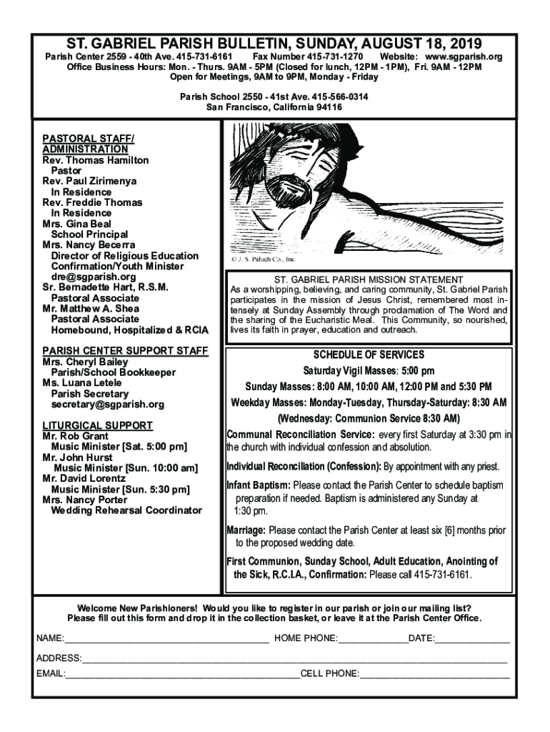 Fill out your st gabriel parish bulletin online with pdfFiller!