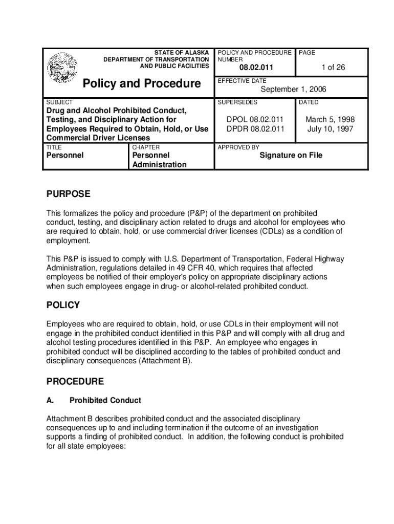 Get the free Testing ProceduresFMCSA - Department of Transportation - dot alaska