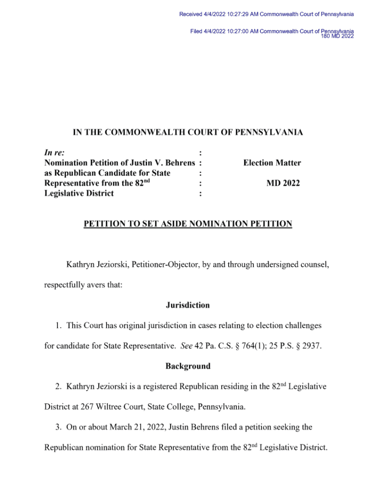 180 MD 2022IN THE COMMONWEALTH COURT OF PENNSYLVANIA