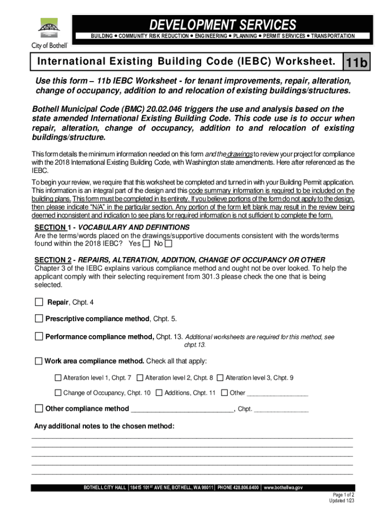 DEVELOPMENT SERVICESBUILDING COMMUNITY RISK REDUCTION ENGINEERING PLANNING PERMIT SERVICES TRANSPORTATIONInternational Existing Building Code (IEC) Worksheet.11bUse this form 11b IEC Worksheet for
