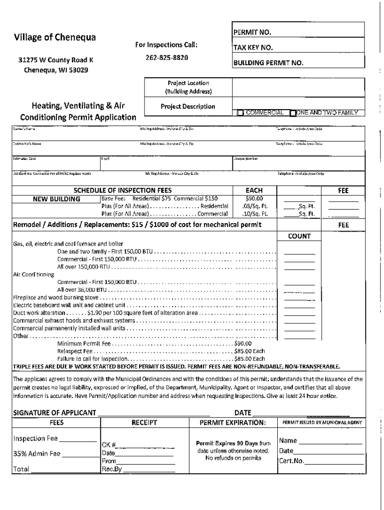 Get the free Village of Chenequa Heating, Ventilating & Air Conditioning Permit ...