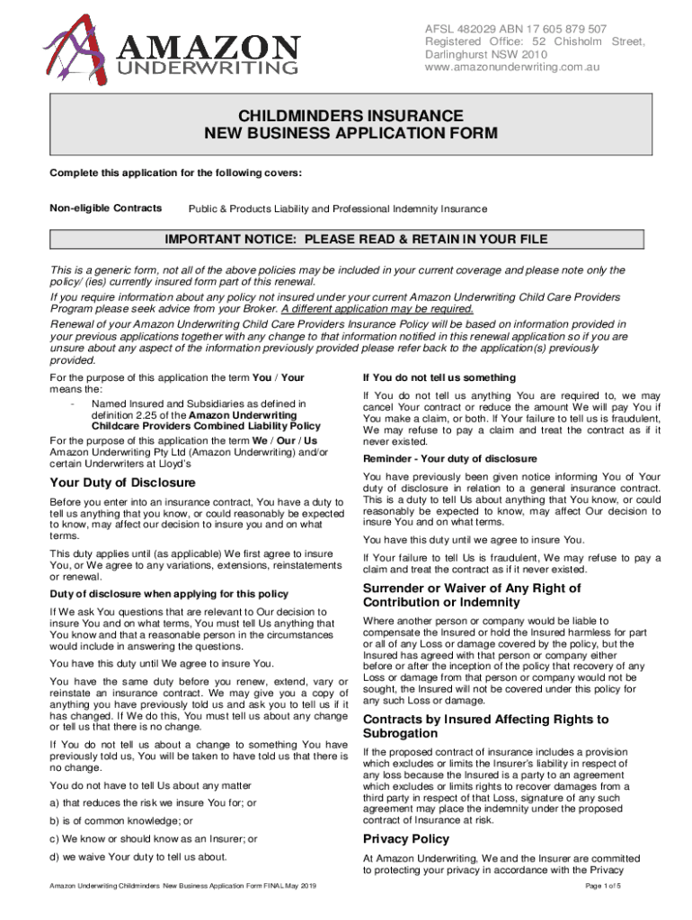 www.amazonunderwriting.com.auCHILDMINDERS INSURANCE