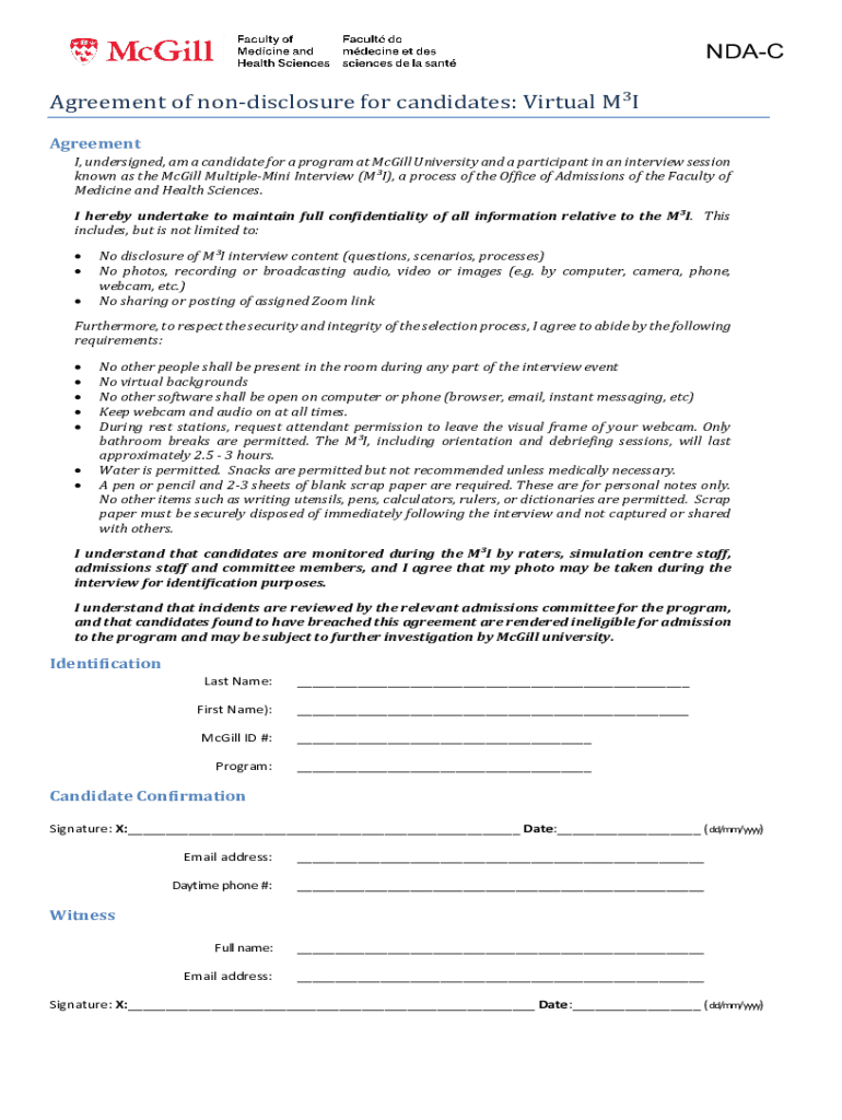 Get the free NDA-C Agreement of non-disclosure for candidates: Virtual MI