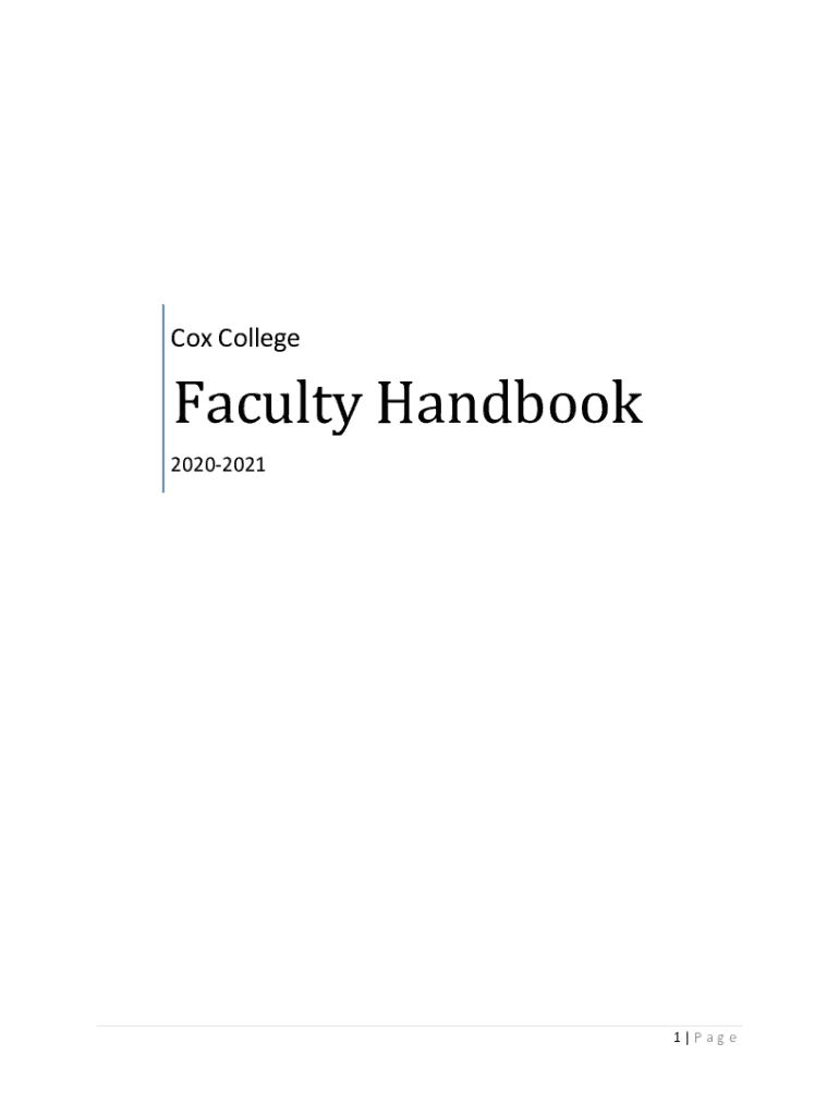 Cox CollegeFaculty Handbook 202020211|Vegetable OF CONTENTS INTRODUCTION ......................................................................................................................................