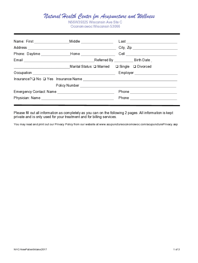 How to fill out natural health center for
