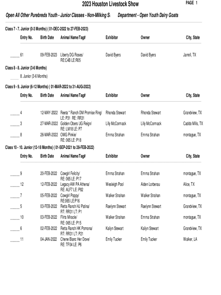 Open All Other Purebreds Youth Junior Classes Milking Department Open Youth Dairy Outclass 7 7. Junior (03 Months) (01DEC2022 to 27FEB2023)