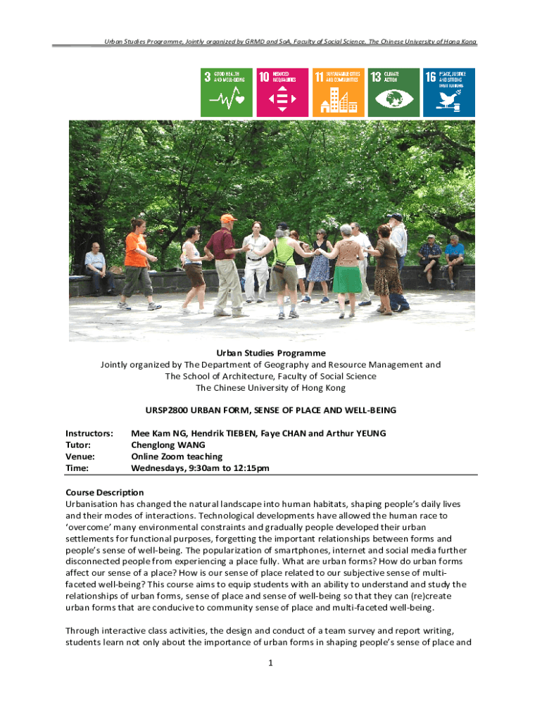 Get the free 1 Urban Studies Programme Jointly organized by The Department of ...