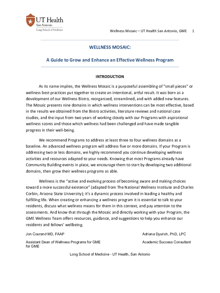 WellnessMosaicUTHealthSanAntonio, ME 1WELLNESSMOSAIC: