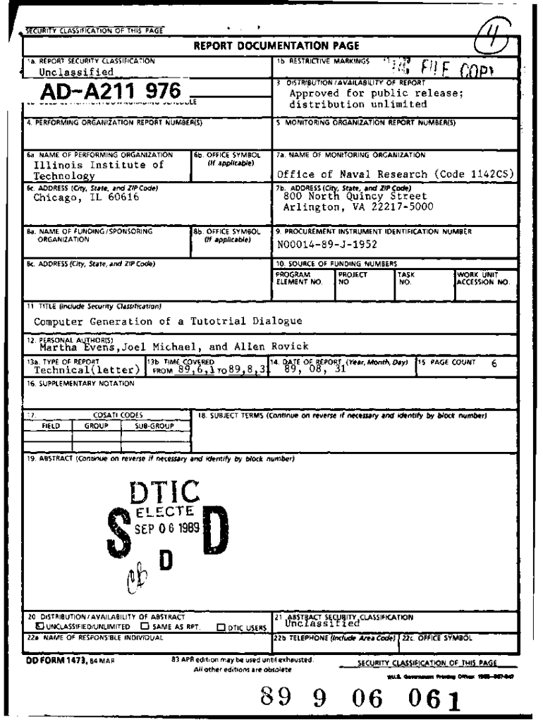 SECURITY CLASSIFICATION OF THIS PAGEREPORT DOCUMENTATION PAGE lb RESTRICTIVE MARKINGS la. REPORT SECURITY CLASSIFICATIONREPORT\'\'U\'classic aided.!1Approved .for public release; distribution unlimitedLE4.