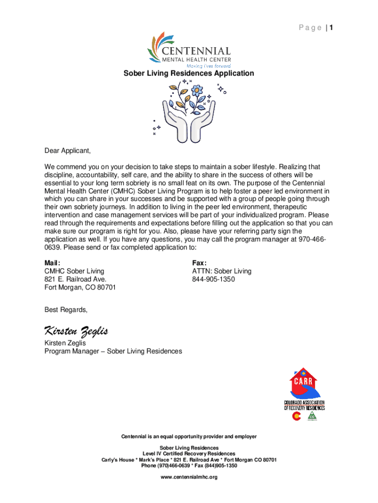 Page |1Sober Living Residences ApplicationDear Applicant,