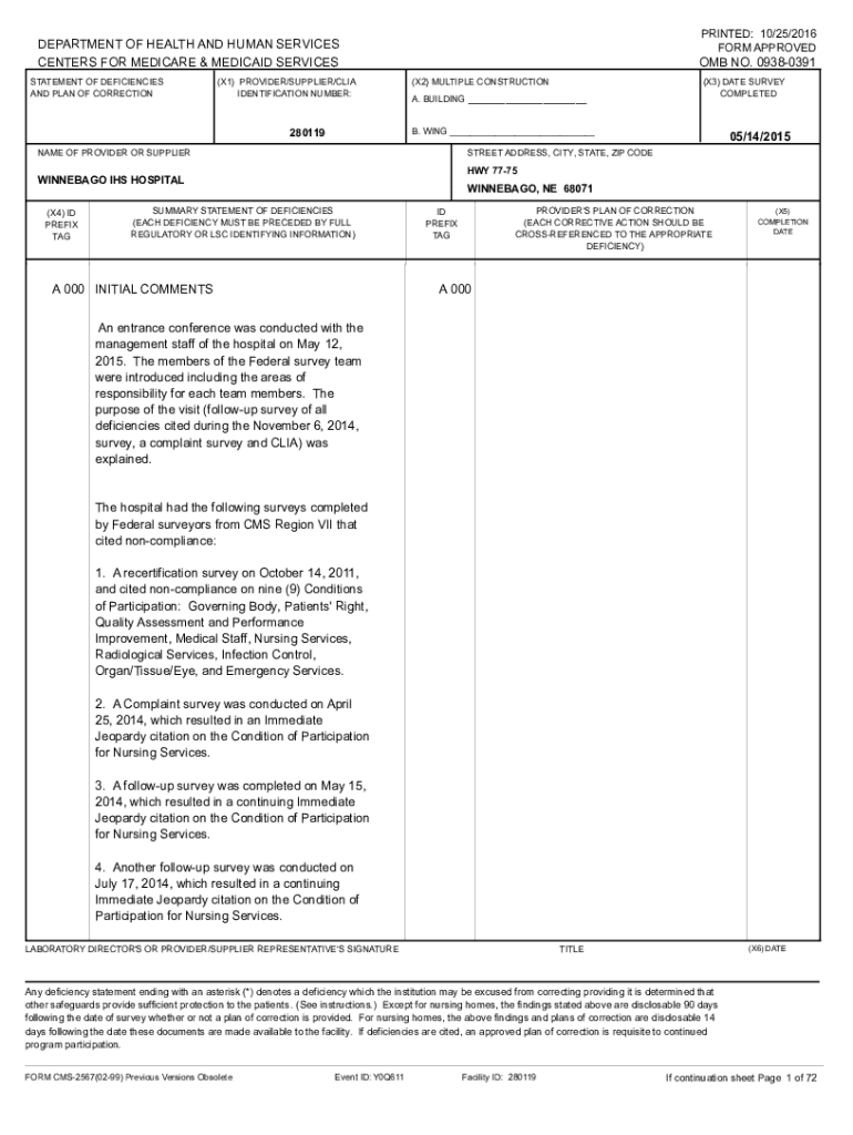 PRINTED: 10/25/2016 FORM APPROVEDDEPARTMENT OF HEALTH AND HUMAN SERVICES CENTERS FOR MEDICARE & MEDICAID SERVICES STATEMENT OF DEFICIENCIES AND PLAN OF CORRECTION(X1) PROVIDER/SUPPLIER/CIA IDENTIFICATION