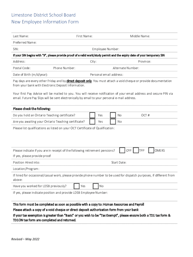 Get the free Limestone District School Board New Employee Information Form