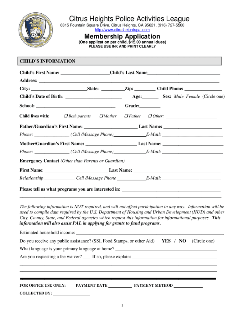 Citrus Heights s Police e Activities Lead GUE 6315 Fountain Sq square Drive, Citrus C Heights, CA 95621, (916) 72755 500 http://www w.citrusheighttspal.nonmembers M ship App placation (One application