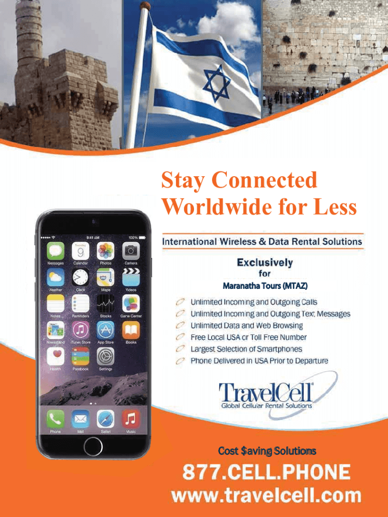 Get the free Israel Cell Phone Rental Form - Maranatha Tours