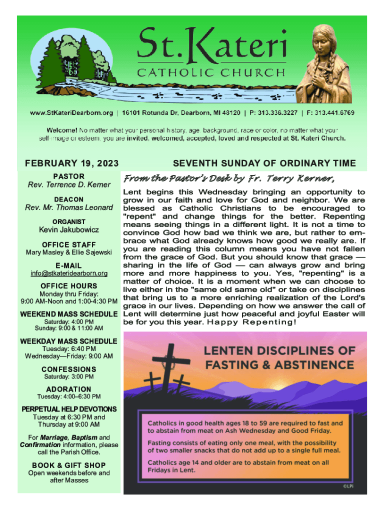 Get the free FEBRUARY 19, 2023 SEVENTH SUNDAY OF ORDINARY TIME
