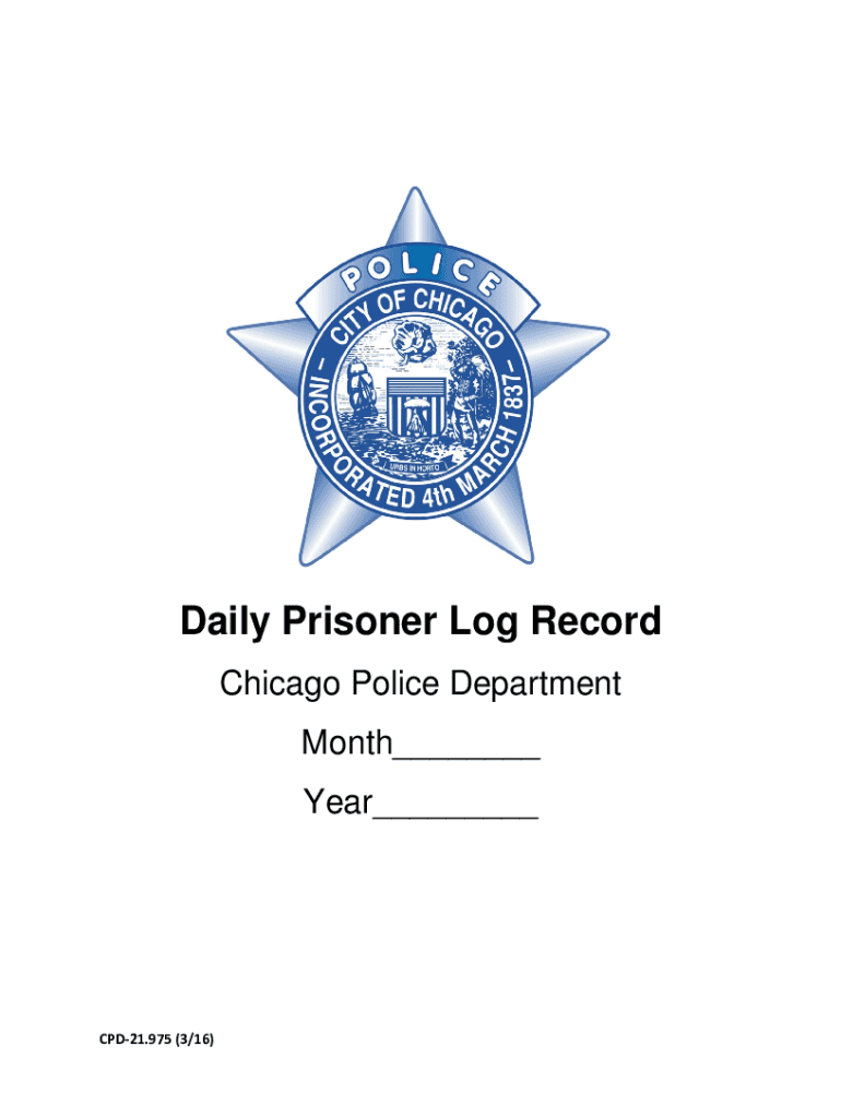 Daily Prisoner Log Record Chicago Police Department Month___ Year___CPD21.975 (3/16)DAILY PRISONER LOG RECORD INSTRUCTIONS 1. This logbook will be kept at the detention facility processing desk until
