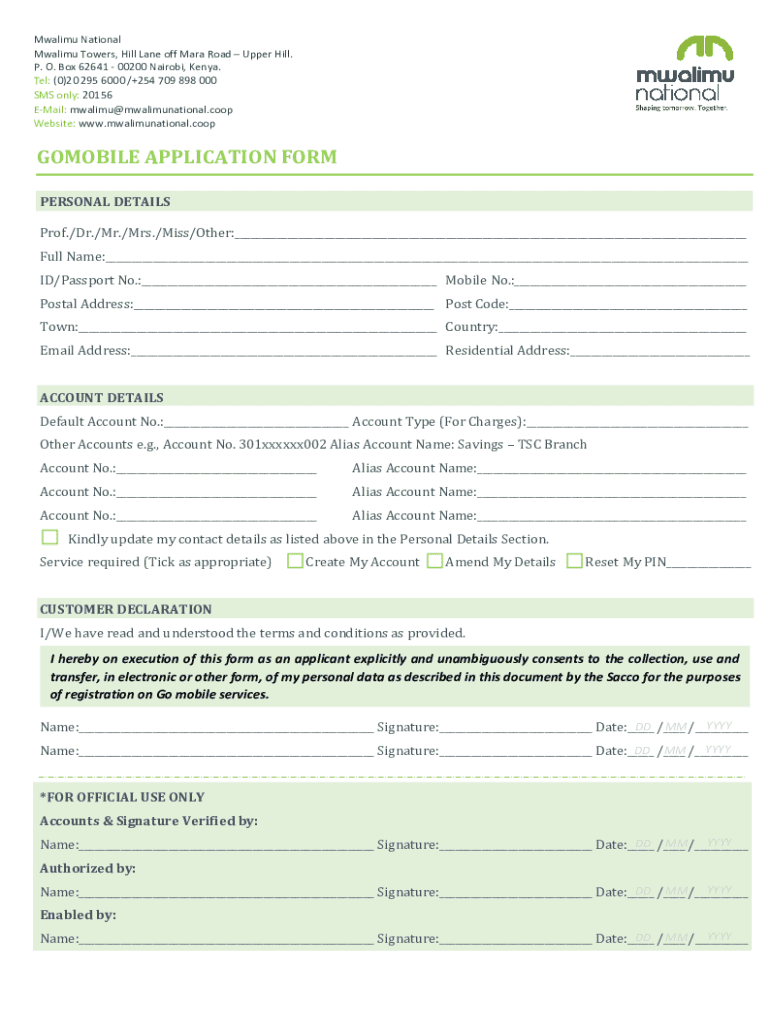 Get the free GOMOBILE APPLICATION FORM - Nairobi