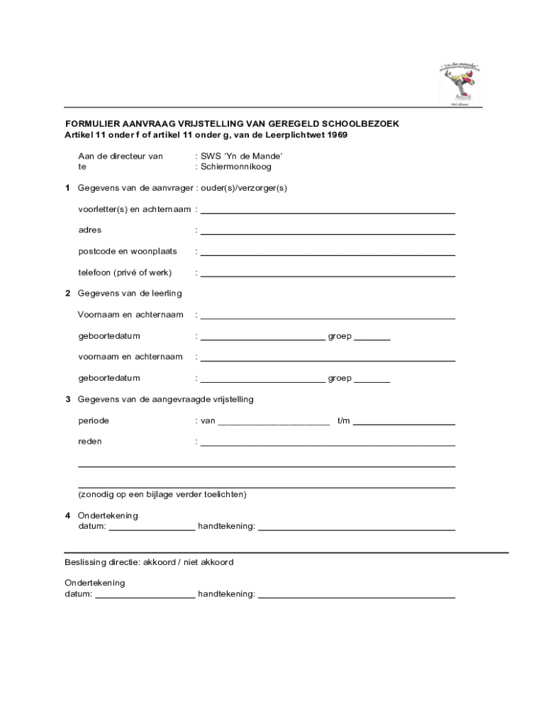 FORMULAE AANVRAAG VRIJSTELLING VAN MERGED SCHOOLBOOK