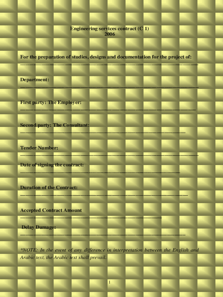 Engineering services contract (C 1) 2006For the preparation of studies, designs and documentation for the project of: ___Department: ___First party: The Employer: ___Second party: The Consultant: