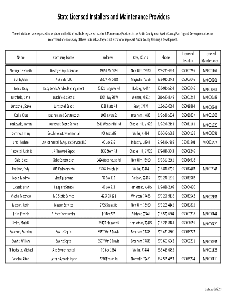 Get the free State Licensed Installers and Maintenance Providers