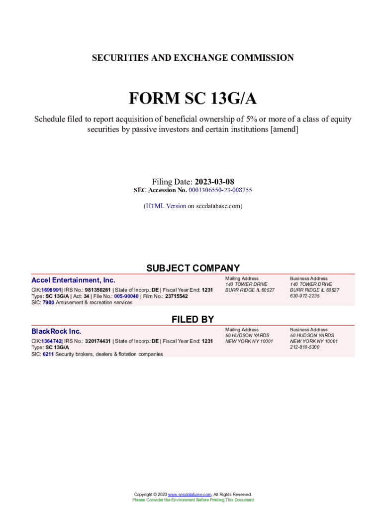 Get the free Accel Entertainment, Inc. Form SC 13G/A Filed 2023-03-08. Accession Number