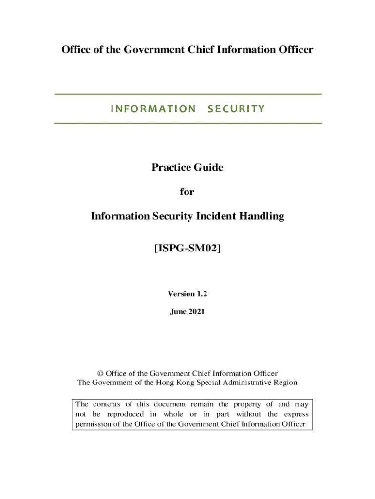 Office of the Government Chief Information OfficerINFORMATIONSECURITYPractice Guide for Information Security Incident Handling [ISPGSM02]Version 1.2 June 2021 Office of the Government Chief Information