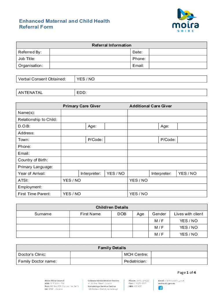 Get the free Enhanced Maternal and Child Health Referral Form Moira Shire ...