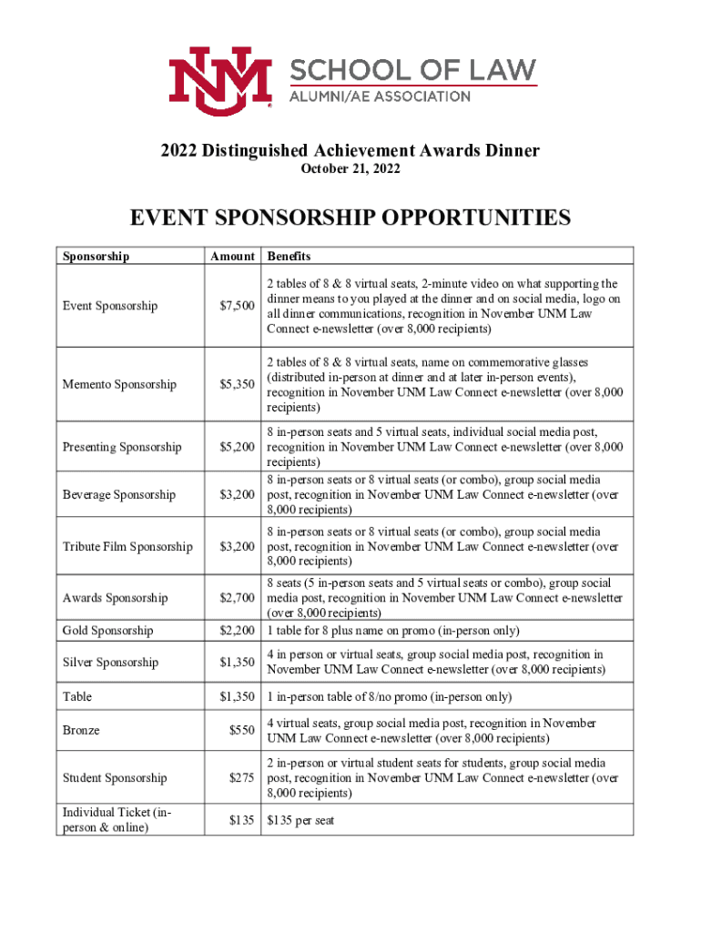Get the free EVENT SPONSORSHIP OPPORTUNITIES - UNM School of Law - lawschool unm