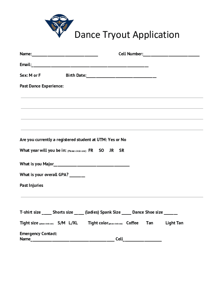 How to fill out dance tryout application?