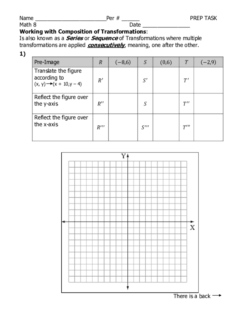 Name ___Per # ___ PREP TASK Math 8 Date ___ Working with Composition of Transformations: Is also known as a Series or Sequence of Transformations where multiple transformations are applied consecutively,