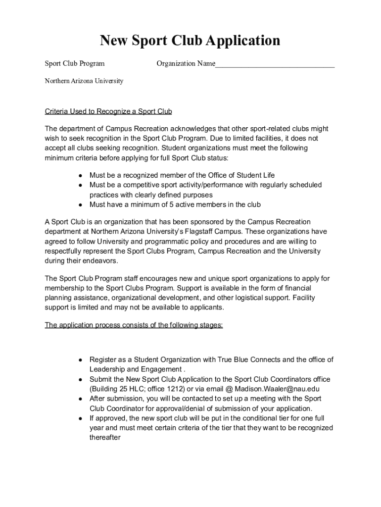 New Sport Club Application Sport Club ProgramOrganization Name___Northern Arizona UniversityCriteria Used to Recognize a Sport Club The department of Campus Recreation acknowledges that other sport